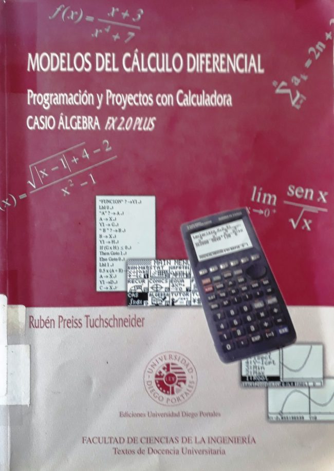 Modelos Del Cálculo Diferencial: Programación y proyectos con Calculadora Casio Álgebra FX 2.0 plus; por el autor: Rubén Preiss Tuchschneider. Para más información de nuestros libros y servicios, acérquese a nuestra Biblioteca, ubicada en Prat 42 Temuco.