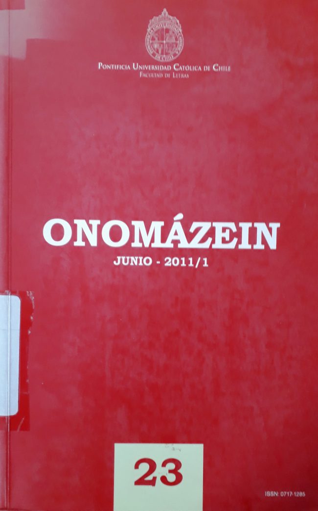 ONOMÁZEIN: Revista de lingüística, filología y traducción. Onomázein acoge artículos inéditos derivados de investigaciones científicas en las diferentes disciplinas de la lingüística teórica y aplicada; en filología clásica, indoeuropea, románica e hispánica; en teoría de la traducción y terminología, así como estudios destacados sobre lenguas indígenas.